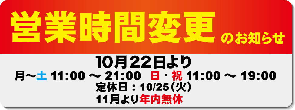 営業時間変更のおしらせ(2016/10/22~) ツイート 営業時間変更のお知らせ 10/22(土)より 月~土11:00~21:00 日・祝11:00~19:00 定休日:10/25(火) 11月~年内は無休 に変更となりますのでお気をつけ下さい。 お仕事帰りのご来店お待ちしております。 タナベスポーツ店内をバーチャル散歩? タナベスポーツ公式チャンネル タナベスポーツ公式フェイスブック タナベスポーツ公式LINE友達募集中 タナベスポーツご案内状お申込み 今更聞けないあんなこと、こんなこと 前のページに戻る