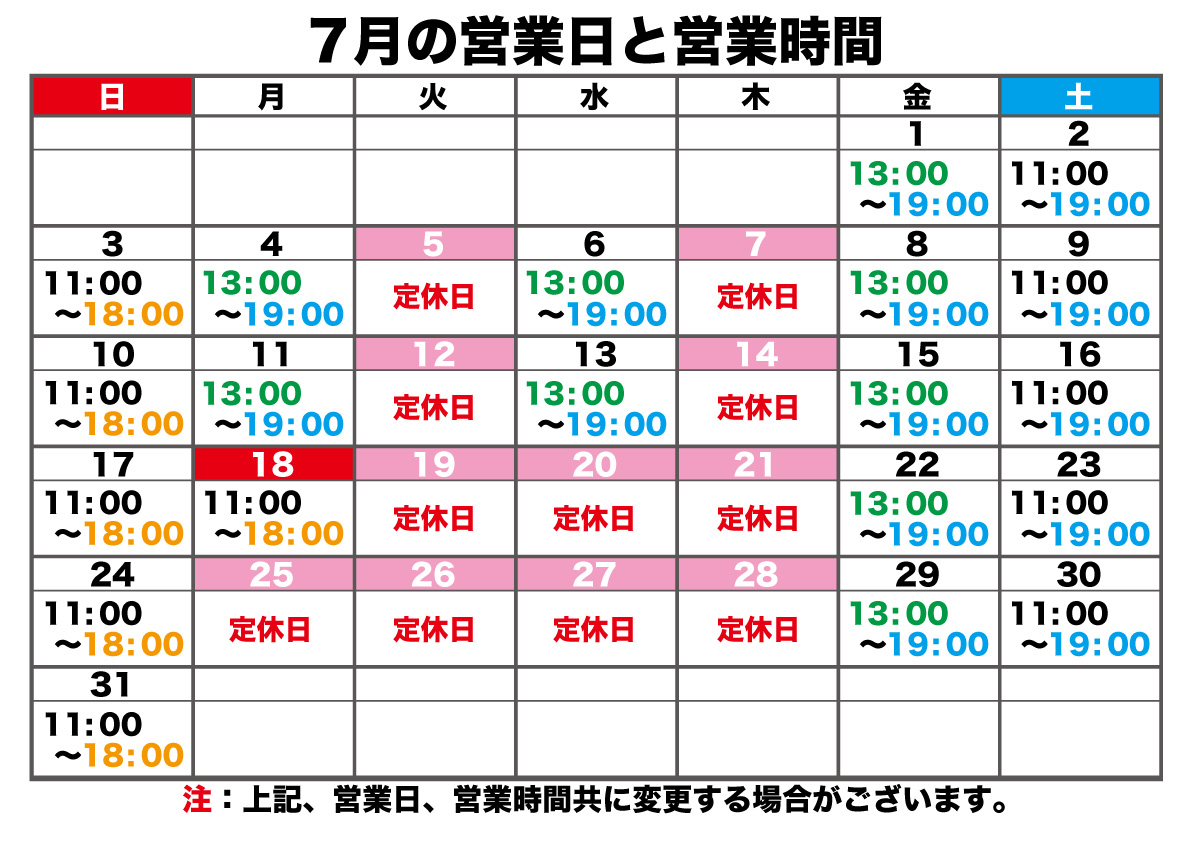 7月の営業日と営業時間のお知らせ(2022/05/26) ツイート タナベスポーツ 2022年7月の営業日と営業時間のお知らせ 実店舗の営業日、営業時間が大きく変更となります。 定休日は火、木曜日 営業時間は 月・水・金曜日13:00~19:00 土曜日11:00~19:00 日・祝11:00~18:00 となります。 ※7月19日(火)より定休日が変更になりますのでお気を付けください 2025-2026NEW MODEL 試乗レポート 2025-2026 NEW MODELSKI WEAR NEWモデルメーカーカタログ集 お悩み解決! ブーツチューンナップ 多彩なコースをラインナップ! スキーチューンナップ スキーに関するちょっとしたお役立ち情報 タナベスポーツ公式 LINE タナベスポーツ公式チャンネル公式チャンネル 今更聞けない あんなこと、こんなこと よくあるご質問 前のページに戻る